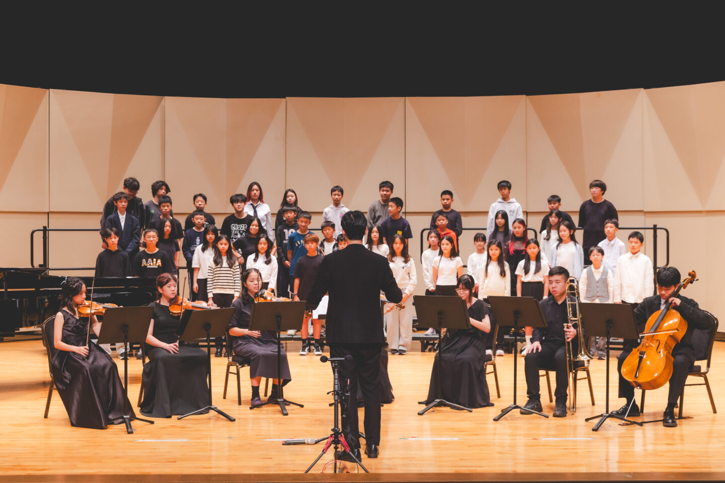 In addition to the wonderful instrumental and vocal performances presented by the AAIA Chamber Orchestra, AAIA Middle School Students, and the AAIA A Cappella Club, all of whom practiced tirelessly to perfect their pieces, the school also invited the Eden Rejoicing Choir for the Blind (伊甸盲人喜樂合唱團). Their heartfelt performance deeply moved the audience, who found themselves immersed in an atmosphere of beauty, warmth, and inspiration.