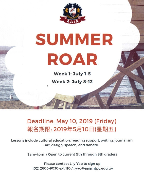 Summer Roar 夏之嘯 暑期夏令營 Open to AAIA and non-AAIA rising 6th through 8th (Current 5th through current 8th grade students). Plan for a minimum of 20 students. Week 1: July 1-5 Week 2: July 8-12 Lessons include cultural education, reading support, writing, journalism, art, design, speech, and debate. 9am – 4pm / Open to current […]
