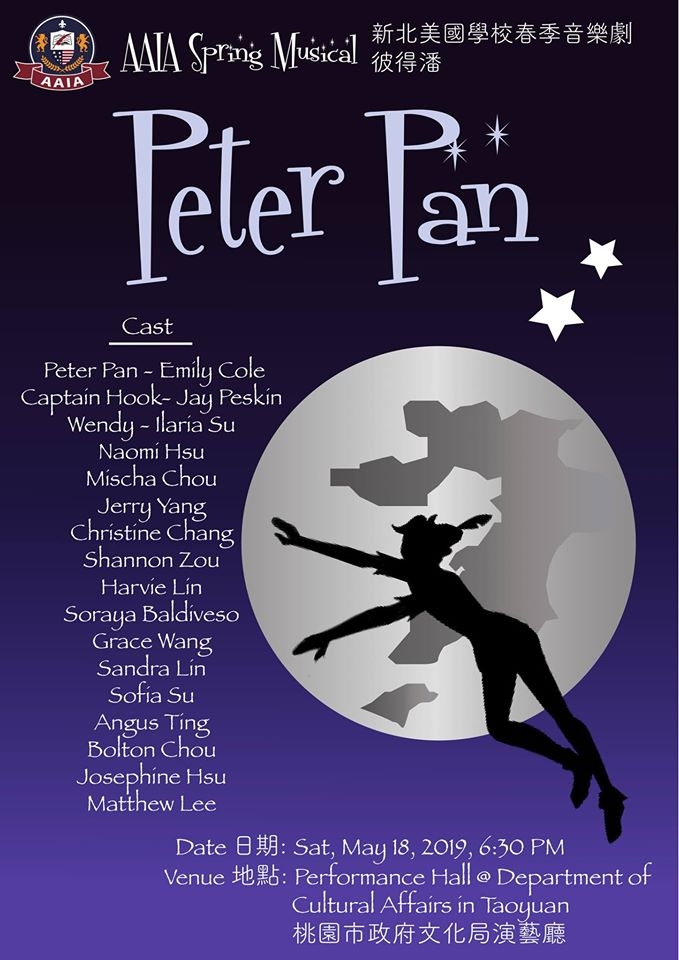 AAIA’s first musical production – Peter Pan will be taking place on Saturday, May 18 from 6:30 p.m. to 9:00 p.m at Performance Hall from Department of Cultural Affairs in Taoyuan. Free admission! Please come and support our talented AAIA’s students. 我們誠摯的邀請您參加於五月十八日(週六)晚間六點半至九點半在桃園市政府文化局演藝廳所舉辦的全英文音樂劇-彼得潘。這次演出將結合AAIA所有的藝術部門(音樂及美術)的合作完成。免費入場。歡迎大家邀請家人朋友一同前往支持! Cast 演出名單: Peter Pan – Emile Cole Captain Hook – Jay Peskin Wendy […]