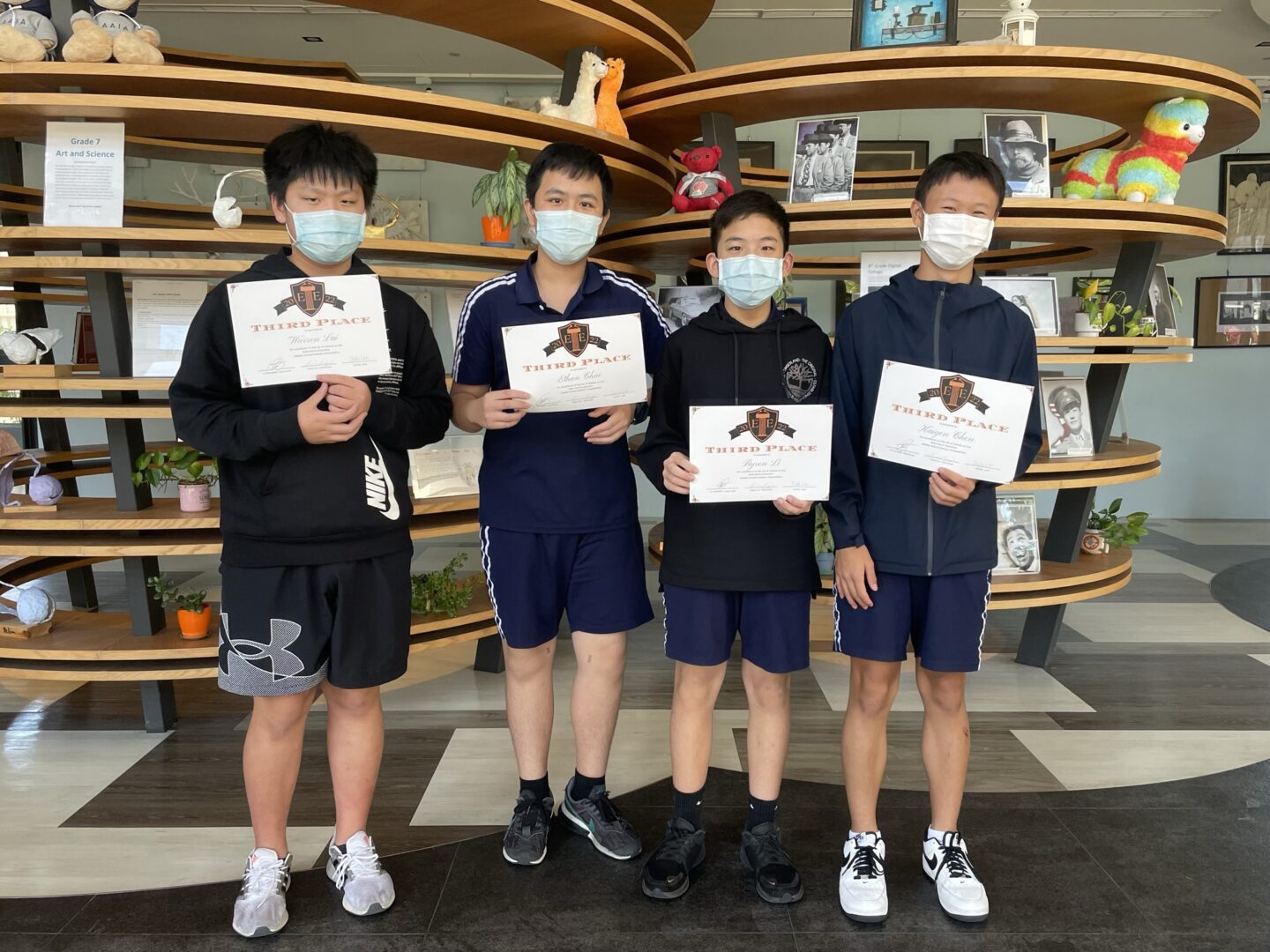Third Place- Team 3 (Veronica C., Mina L., Ashley C., Yuna T.) and Team 13 (Kaiyen C., Warren L., Ethan C., Byron L.)