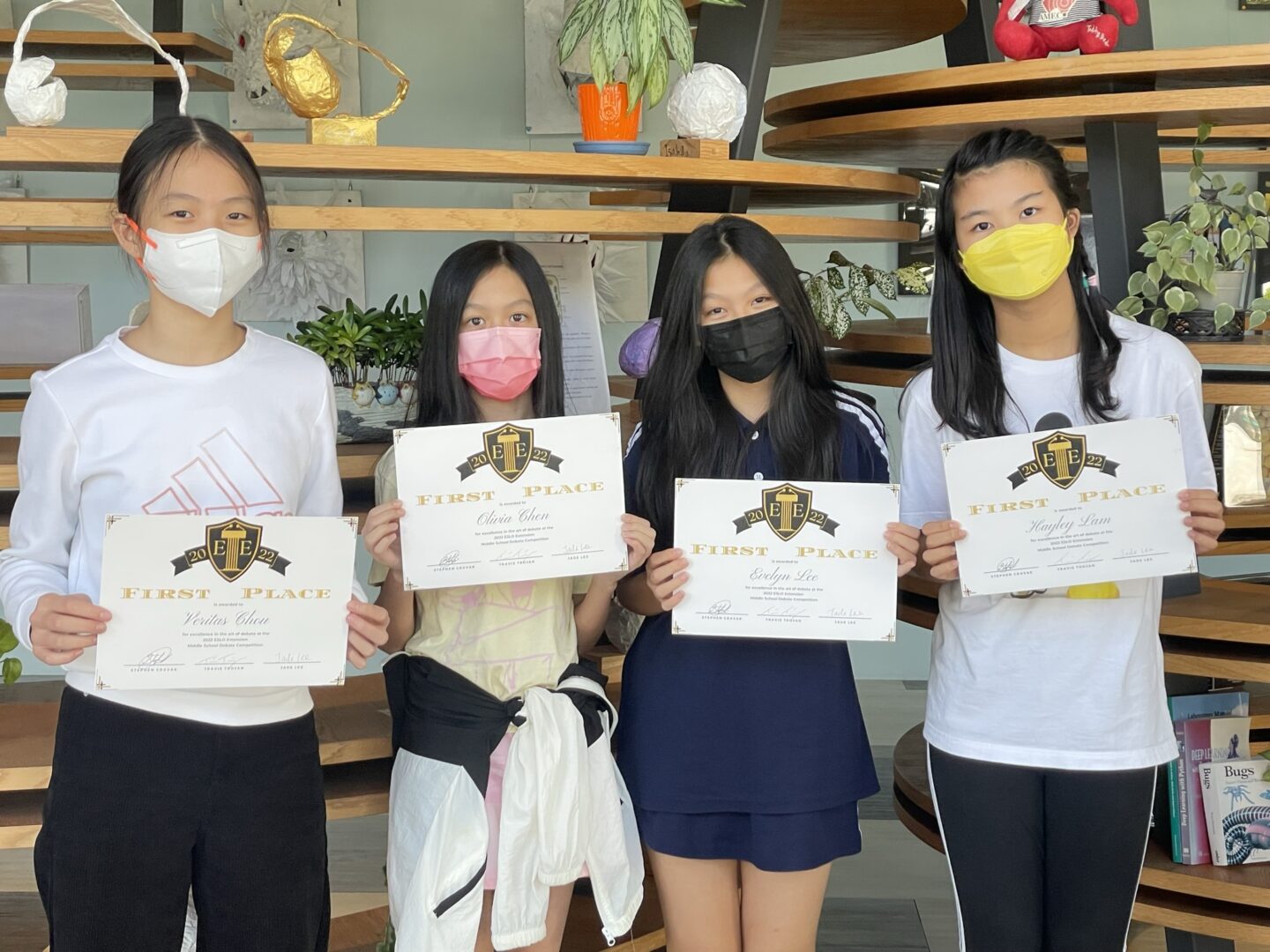 The Middle School ESLO Extension class has spent the past month teaching students how to write speeches and follow procedures for the public forum style of debate. From Monday (11/7) to Friday (11/11), all of the ESLO Extension students practiced using their debating skills by participating in the first-ever ESLO Extension Debate Competition. The competition started with qualifying rounds, then semi-finals, and eventually culminated in a grand final round on Friday (11/11), during which the top two teams debated the topic of “Should zoos be banned?”. Please join us in congratulating the following teams on their excellent performances in the competition: