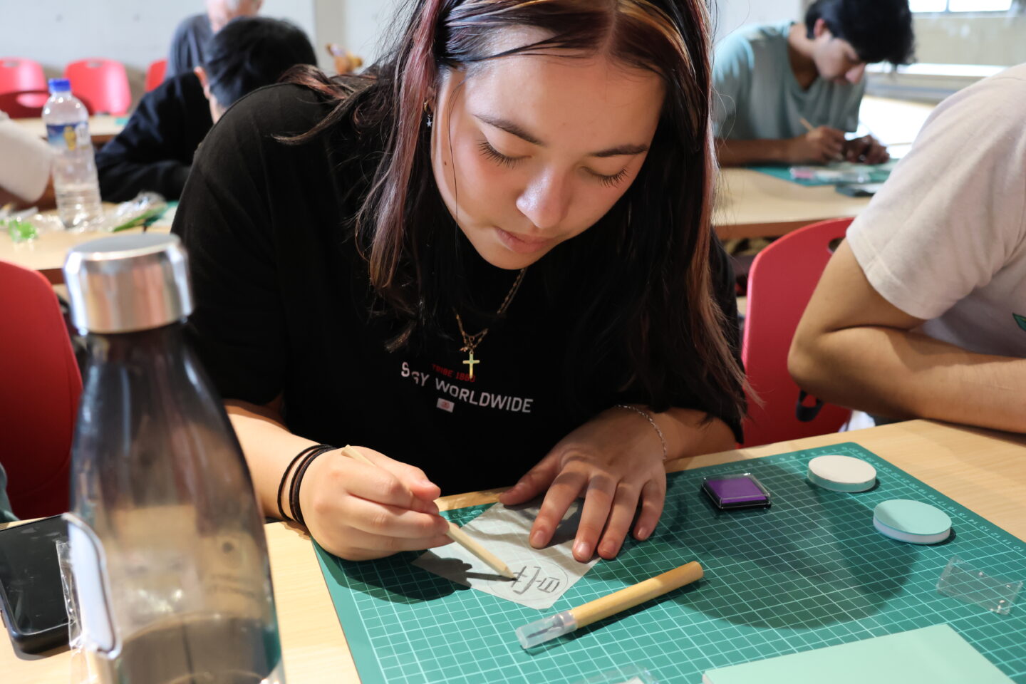 AAIA students welcomed the NIHS delegation with wonderful performances, and the NIHS students met their homestay families, marking the beginning of their learning journey in Taiwan. During their time on campus, NIHS students had the chance to experience traditional Taiwanese culture through activities such as seal carving, traditional folk games, and dumpling making, as well as learning alongside their AAIA buddies in class.