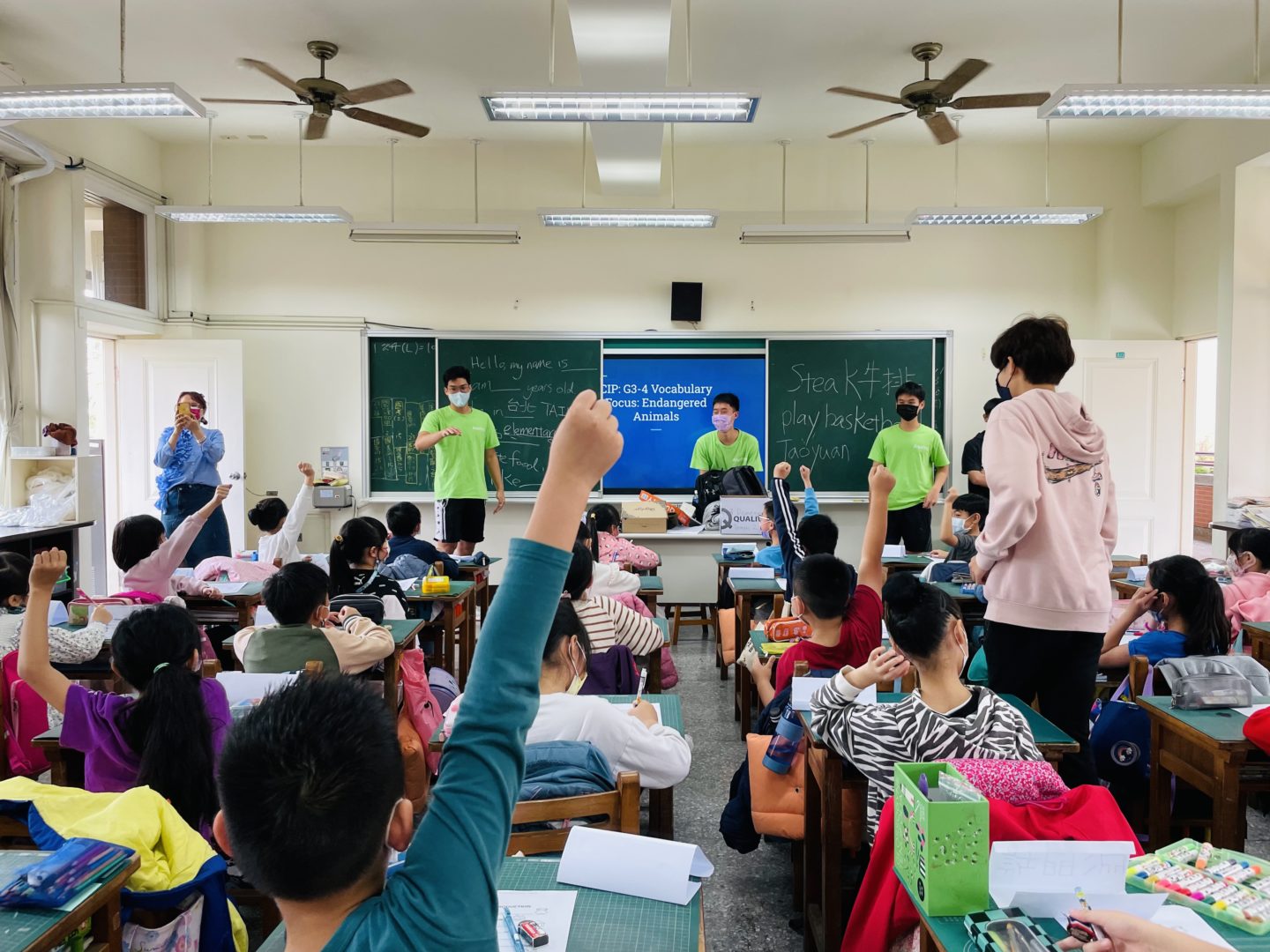 On March 30, AAIA’s high schoolers participated in the annual Community Impact Project (CIP) by engaging with students at Shunag Long Elementary School (雙龍國小) in Taoyuan. The day began with an opening ceremony joyously filled with dazzling performances from Shuang Long’s kindergarten and nationally-ranked gymnastics teams. Each of AAIA’s eight houses formed three teaching teams, with each team leading 24 classes across Grades 3, 4, 5, 6. Instruction included an English lesson centered on Endangered Animals and numbers, as well as storytime activities featuring an English picture book. AAIA students were thankful to showcase their high character, active learning, critical thinking, effective communication, and global awareness. Additionally, students from both AAIA and Shuang Long cherished the experience so much that both schools are already planning for next year!